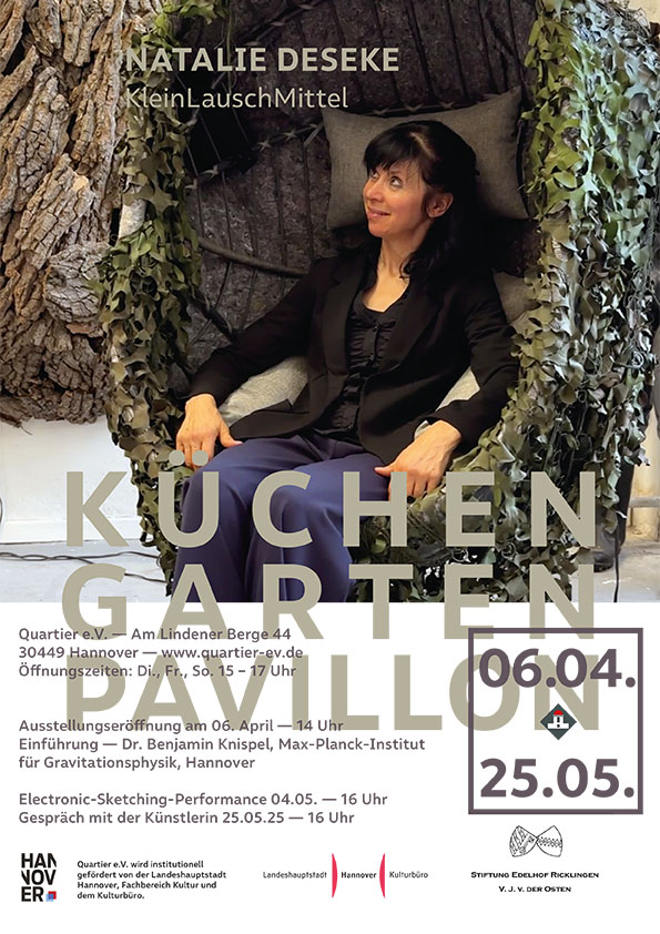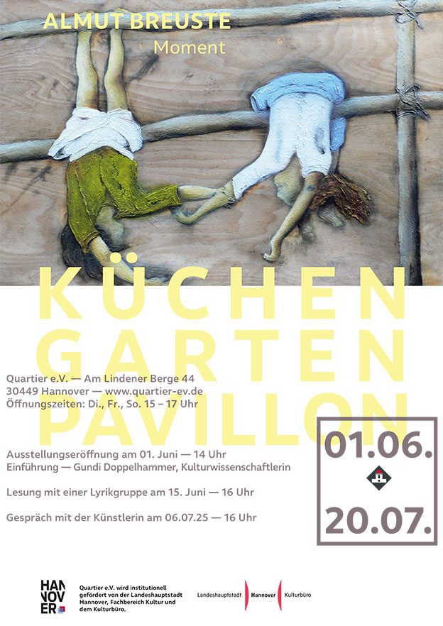 ![]() | Quartier e.V. lädt am 5. Oktober 2025 um 14 Uhr in die Ausstellung "Stücke aus dem Paradies" mit der Malerin Andrea Eifler Die Einführung spricht Gudrun Meischner. Wir freuen uns auf ihren Besuch. |