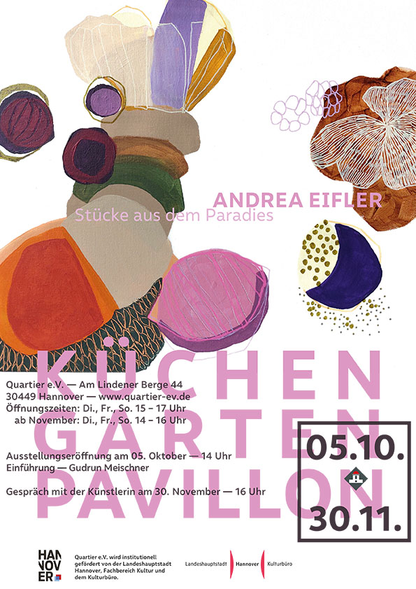 ![]() | Quartier e.V. lädt am 5. Oktober 2025 um 14 Uhr in die Ausstellung "Stücke aus dem Paradies" mit der Malerin Andrea Eifler Die Einführung spricht Gudrun Meischner. Wir freuen uns auf ihren Besuch. |